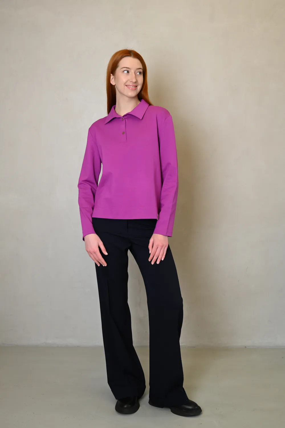 Оживите базу гардероба ярким акцентом: поло из вискозы в насыщенном оттенке – это сочетание комфорта, легкости ткани и модного цвета. Идеально подходит для кэжуал-образов или как самостоятельный верх – достаточно универсально, чтобы работать в разных стилях.