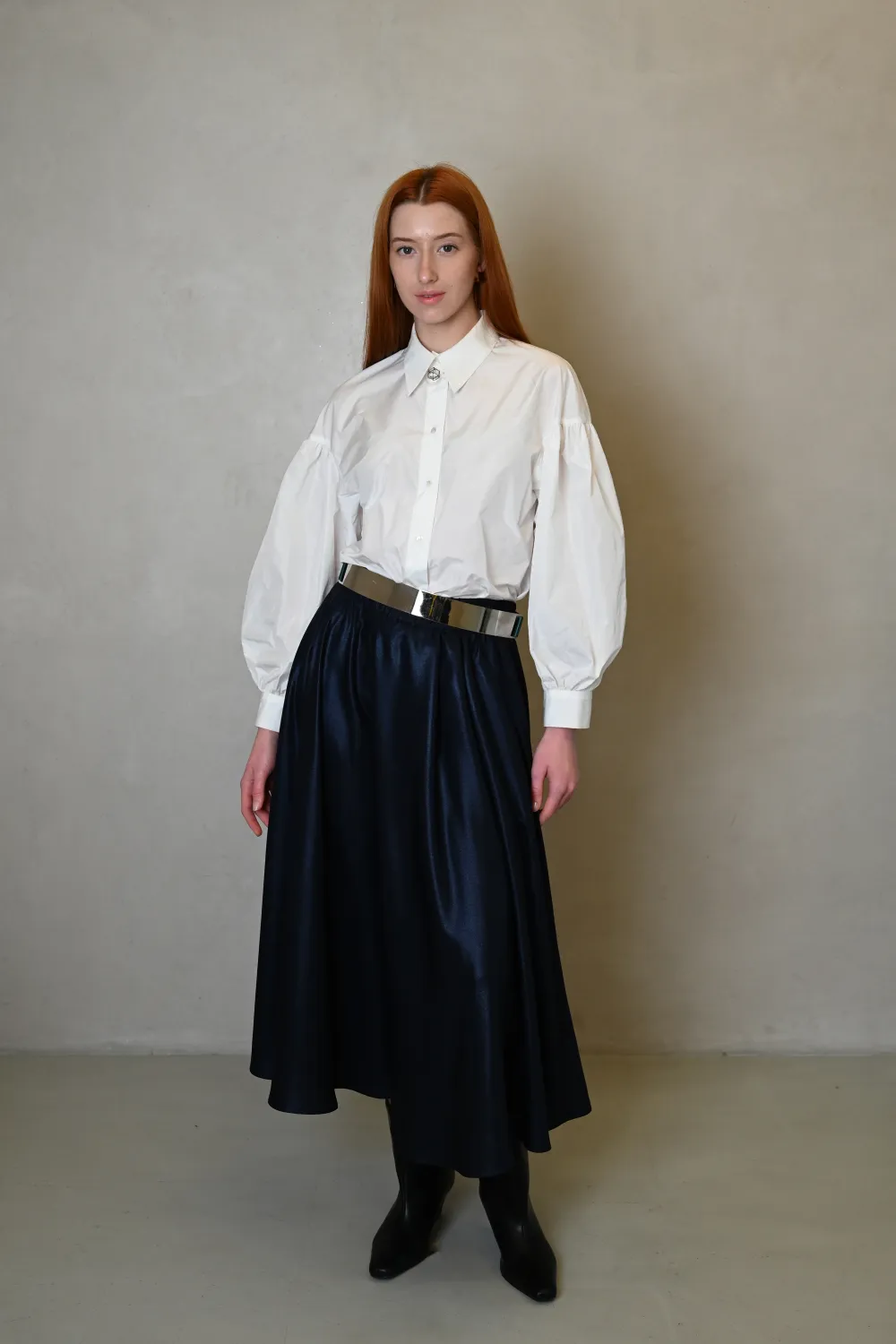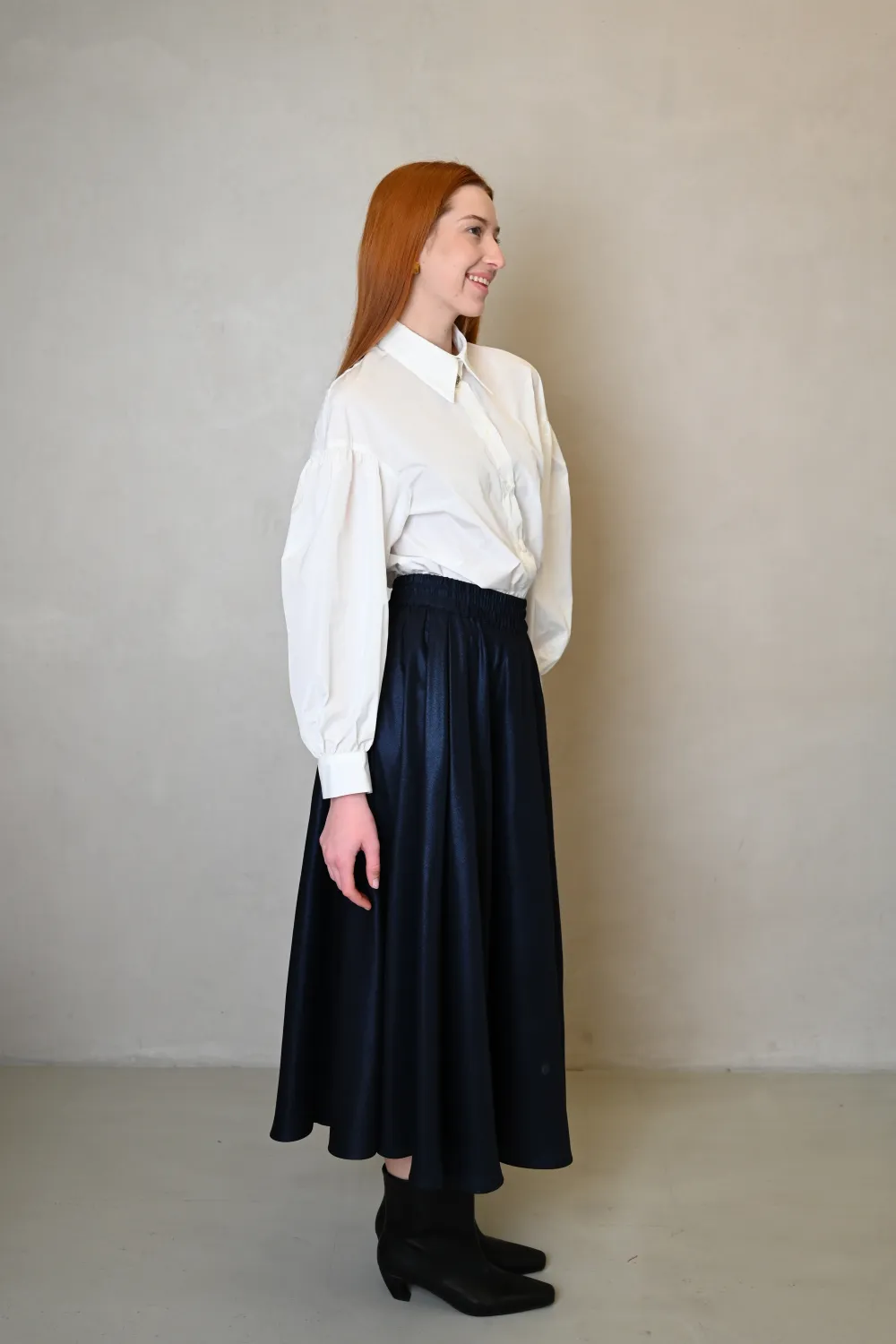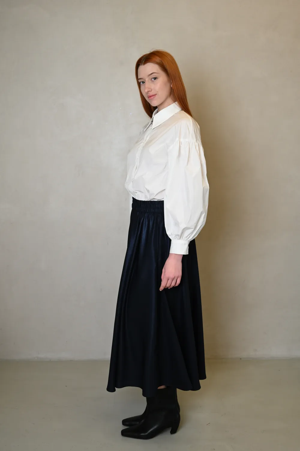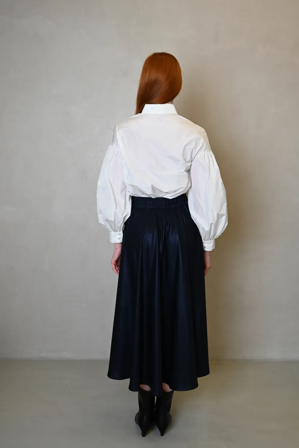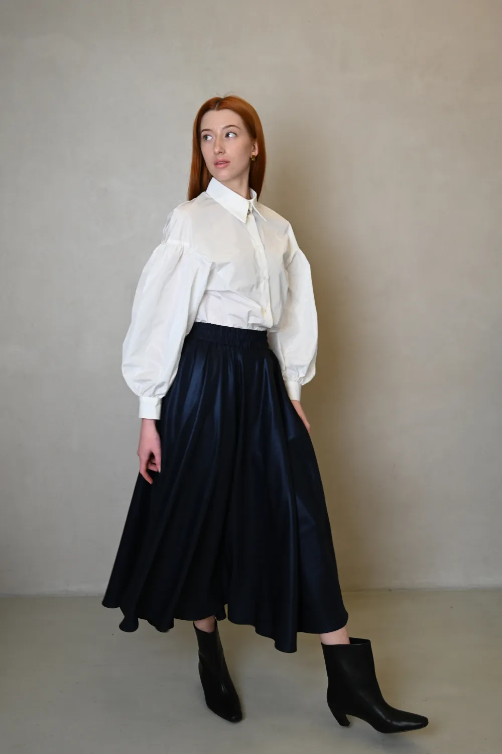 Темно-синяя юбка солнце-клеш на резинке в миди длиной с тафтами Хезер