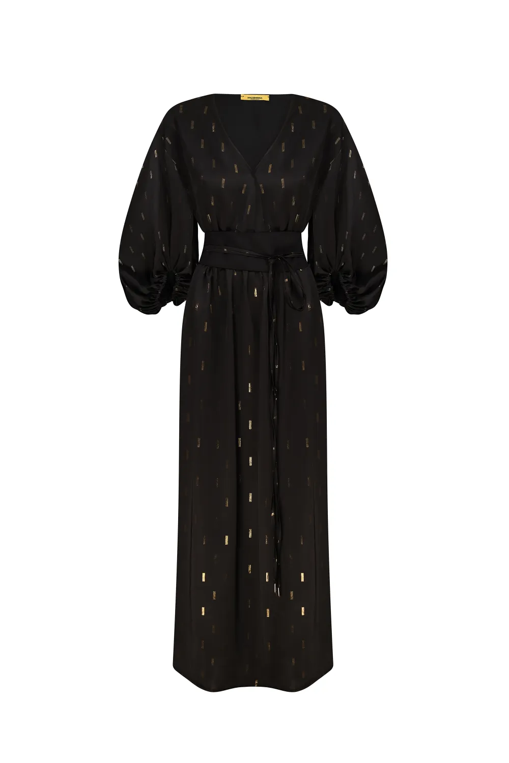 Создайте запоминающийся момент. Вечернее платье Елена – это сочетание утонченной элегантности и современной драматичности. Глубокий базовый цвет, макси-длина и пышные рукава создают сильный, женственный силуэт, играющий в свете и тени. Акцентная линия талии с поясом подчеркивает форму, а струящаяся ткань движется вместе с вами, делая каждый шаг особенным.