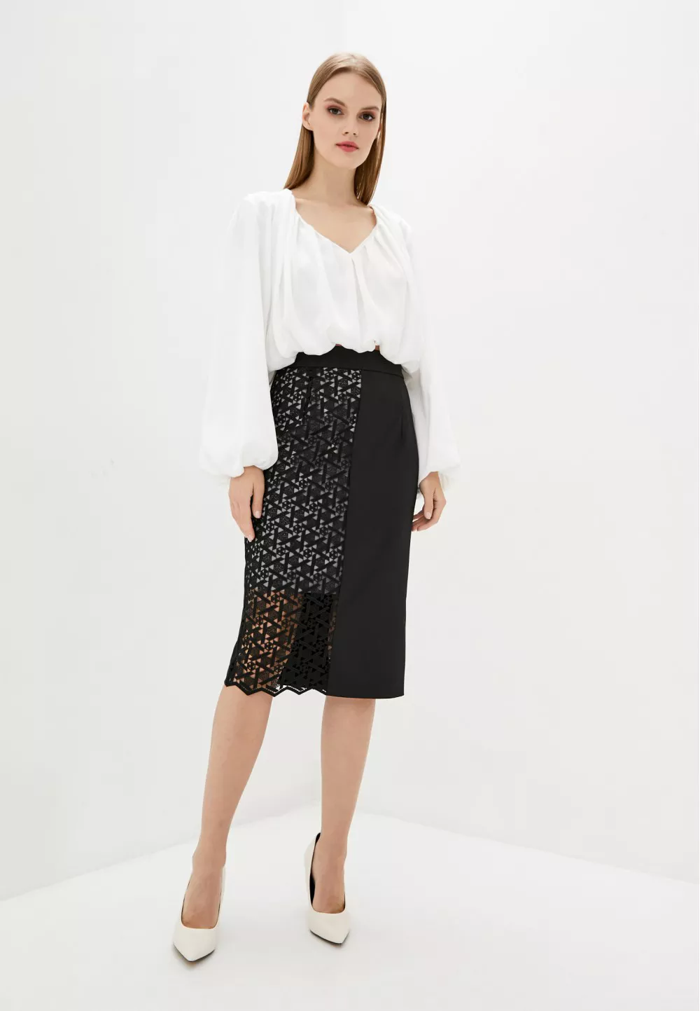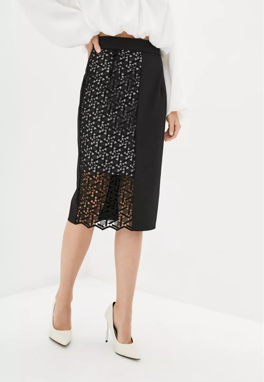 Юбка "карандаш" с посадкой на талии из крепа и отделкой из кружева