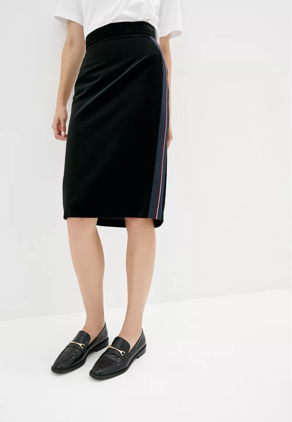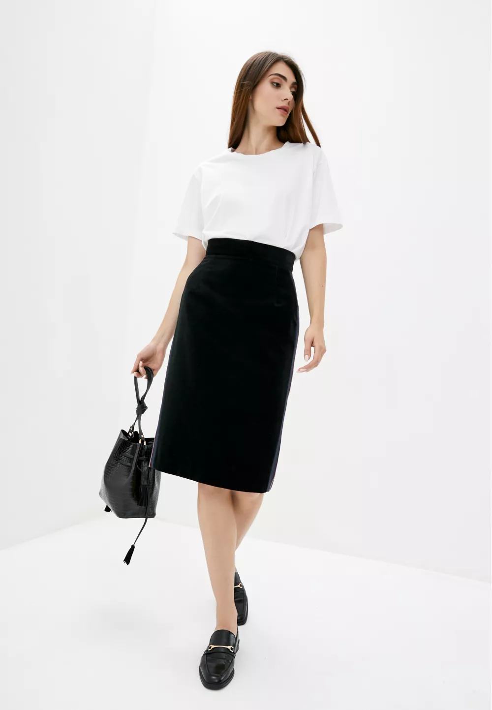 Юбка "карандаш" с посадкой на талии из бархатного коттона, по бокам - лампасы, что визуально стройнят силуэт