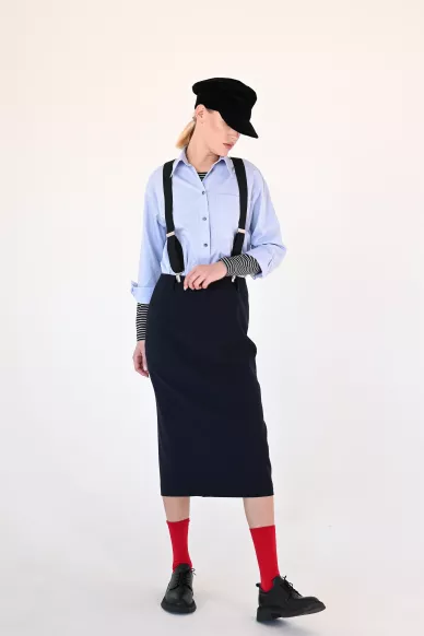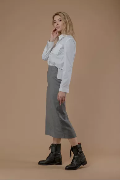 - Спідниця-олівець з вовняної тканини “Габріель”: довжина міді, застібка на блискавці та гудзику. Склад: 98% вовна; 2% еластан.